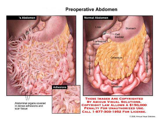 Abdominal adhesions can cause intestinal obstruction, pain, or even cause fertility issues in women.
